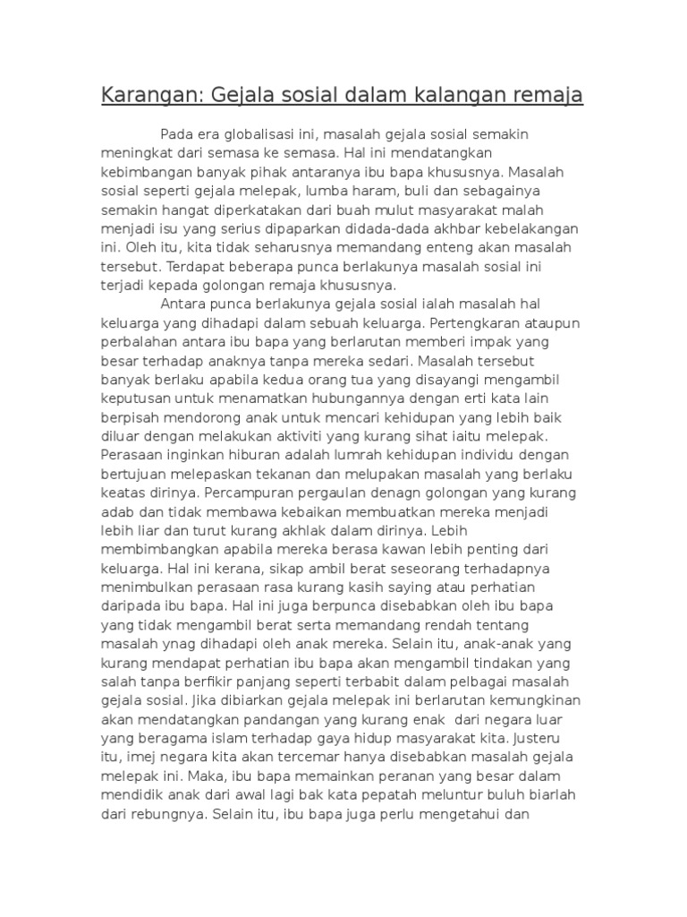 Karangan Punca Punca Gejala Sosial Dalam Kalangan Remaja Englshmina