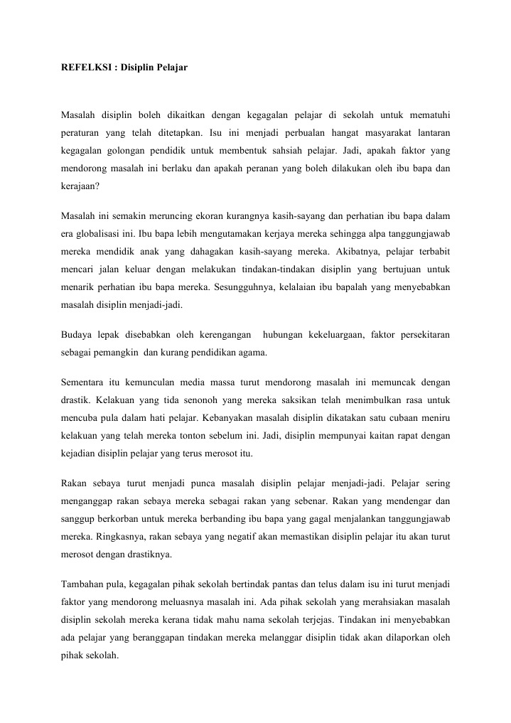Selain itu pengaruh rakan sebaya juga merupakan salah satu faktor berlakunya masalah disiplin dalam kalangan pelajar. Vi ABSTRACT This study seeks to identify discipline problems among. Setiap tingkah laku rakan sebaya juga akan mempengaruhi tindakan mereka.