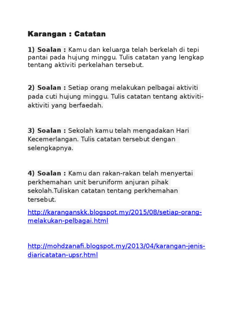 Terpantas Contoh Karangan Catatan Tahun 4