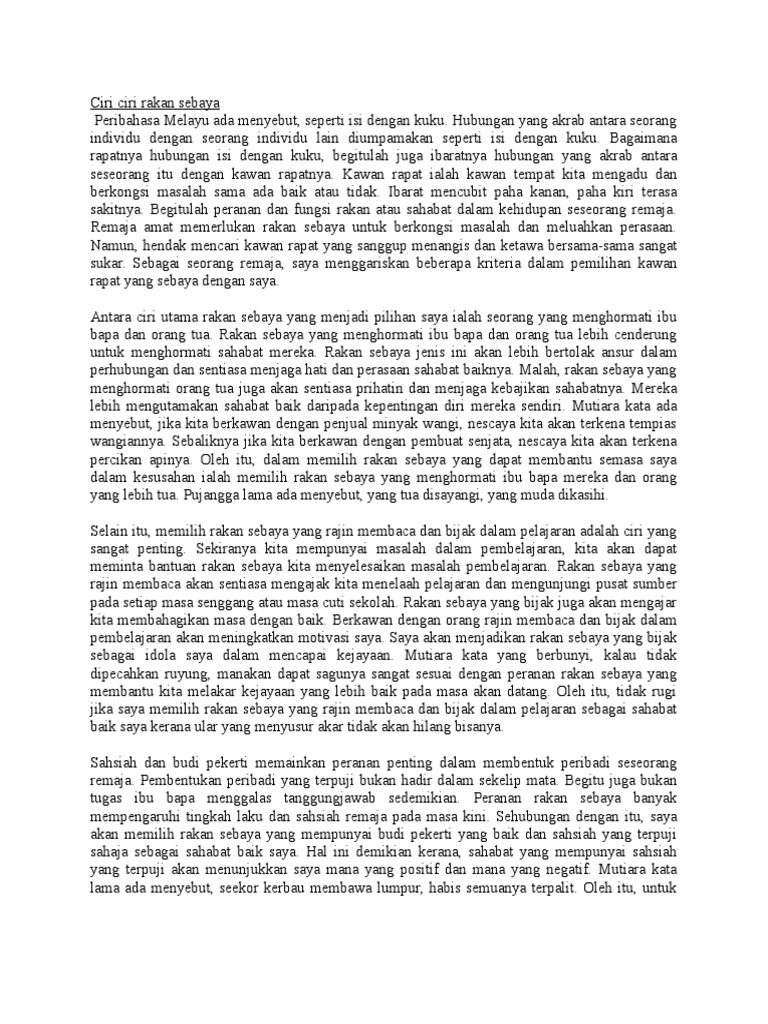 At September 09 2014. Sehubungan dengan itu saya akan memilih rakan sebaya yang mempunyai budi pekerti yang baik dan sahsiah yang terpuji sahaja sebagai sahabat baik saya. Walaupun orang yang mendengar tidak mampu membantu sekurang-kurangnya luahan masalah itu dapat meringankan kekusutan yang bermain di minda.
