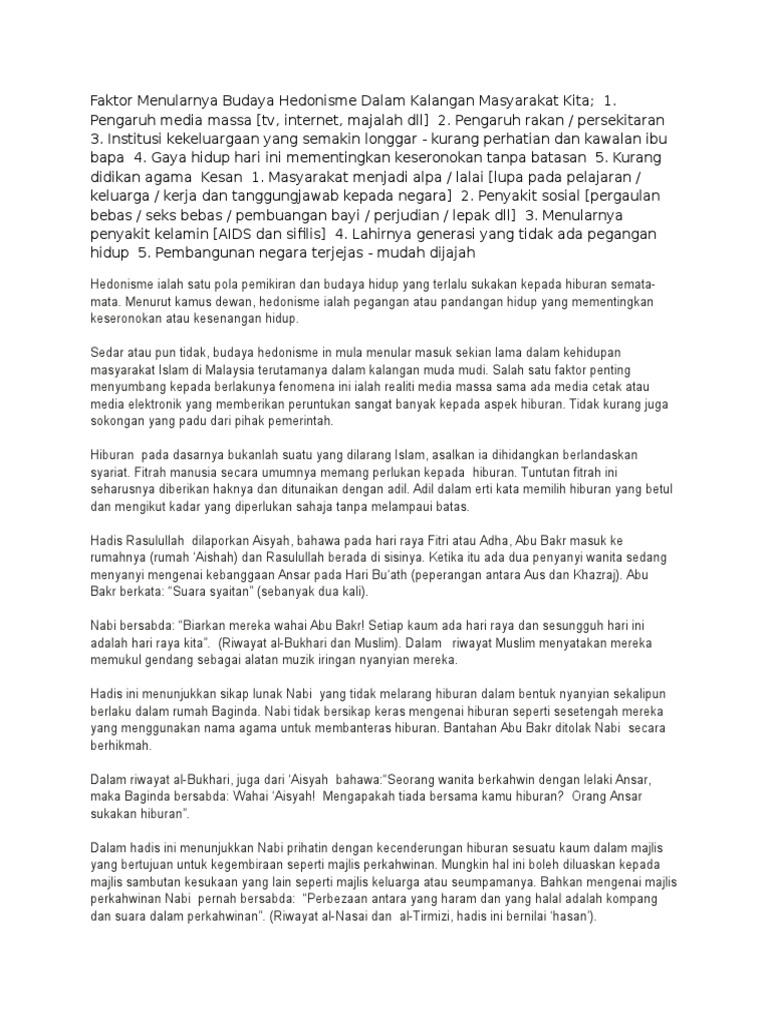 Faktor Menularnya Budaya Hedonisme Dalam Kalangan Masyarakat Kita Pdf